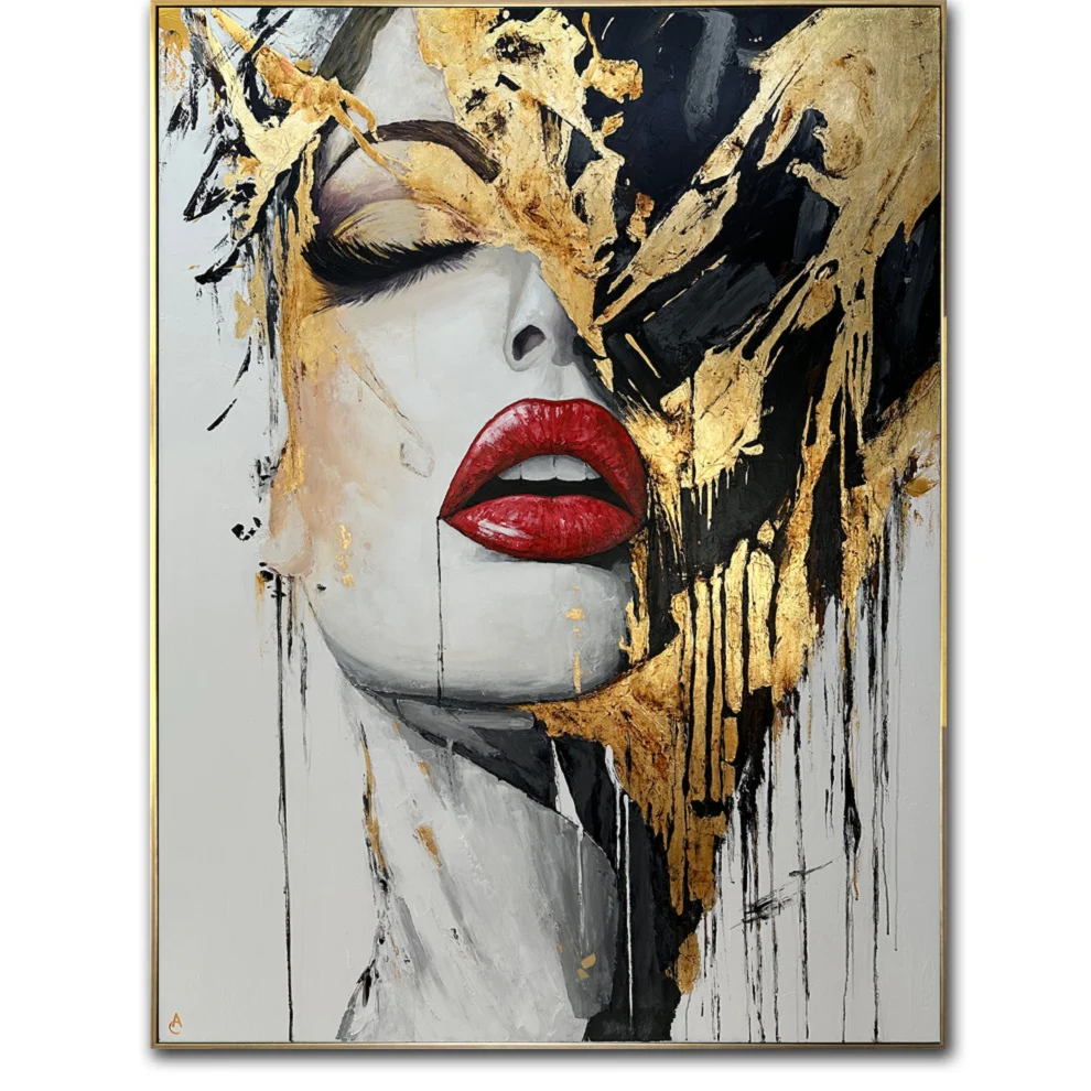 0505-0080955-a-CRIMSON KISS gilded abstract portrait sensual female face AW-53818975584424